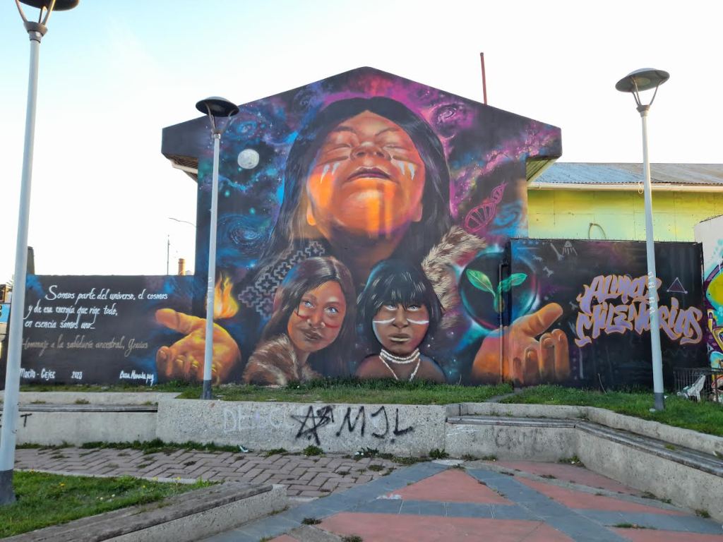 y además de un profundo interés por rescatar y poner en valor la cultura y respeto hacia los pueblos originarios del territorio. El graffiti fue mi inicio rayando muros desde el 2004 hasta ir transformando la pintura en parte esencial del desarrollo de mi vida y familia.
