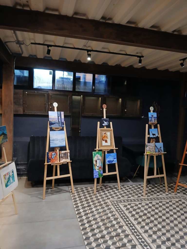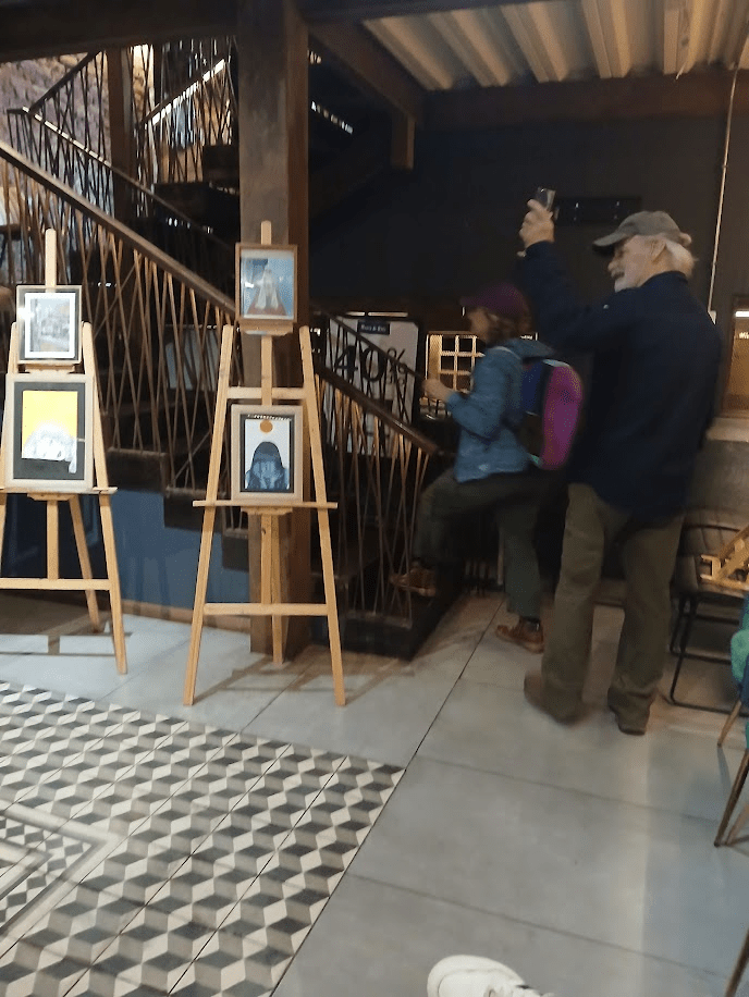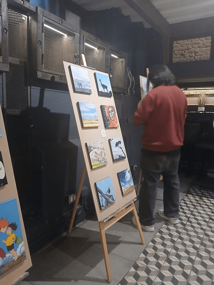 Aunque las condiciones climáticas en Punta Arenas obligaron a un cambio de última hora en el lugar de exhibición, esto no impidió que el arte regional se luciera. Gracias al generoso apoyo del restaurante «A Brasas», ubicado en Pdte. Federico Errázuriz 952, se habilitó la cava de vinos del local como espacio alternativo para la exposición. Este acogedor entorno ofreció una experiencia íntima y cálida para los asistentes, quienes mostraron gran interés en las obras expuestas, resultando incluso en la venta de algunas piezas.