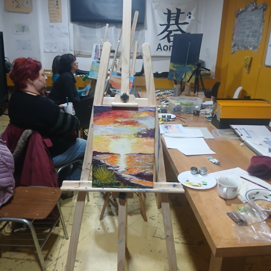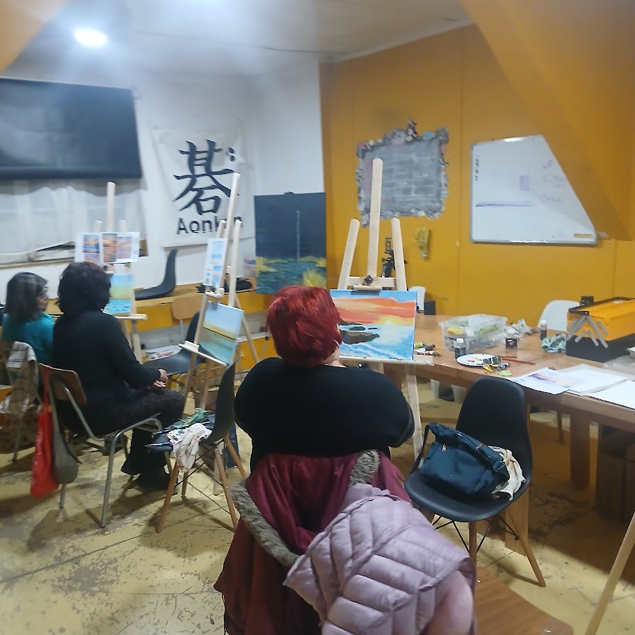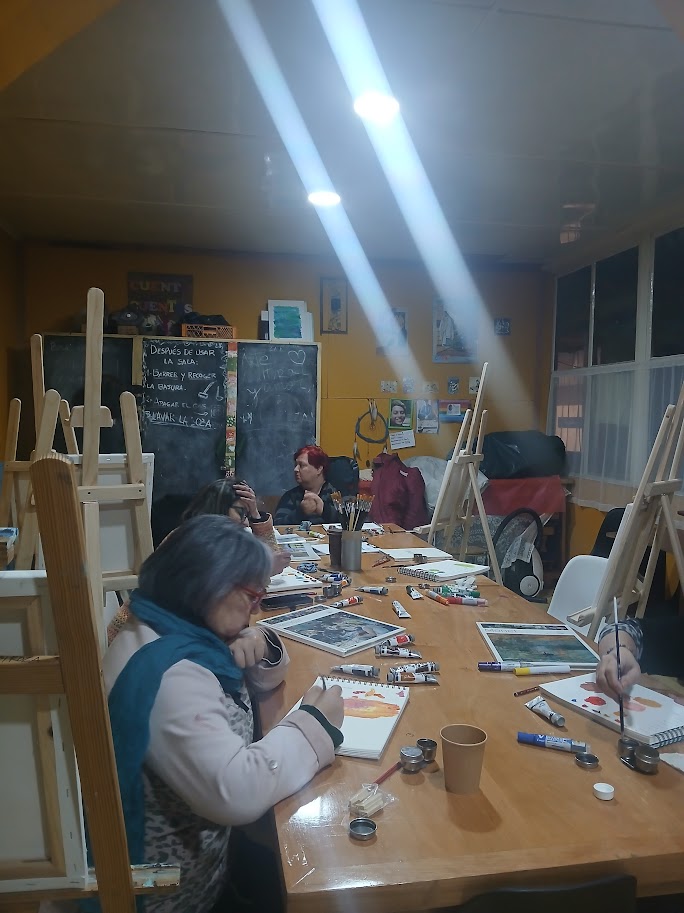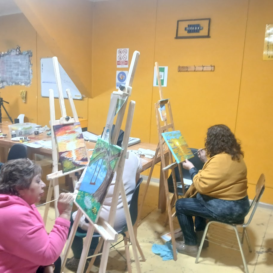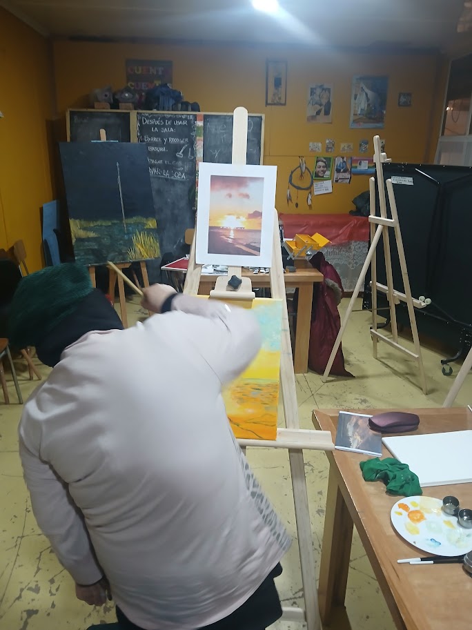 El Grupo 2 comenzó su participación en Cielos y Mares de Magallanes en junio de 2025, reuniéndose cada miércoles en dependencias de Espacio La Idea. A lo largo de las sesiones, las y los integrantes exploraron la pintura al óleo desde la experimentación con colores, formas y recuerdos personales vinculados al territorio. Este grupo destacó por la constancia y la riqueza de los procesos compartido.