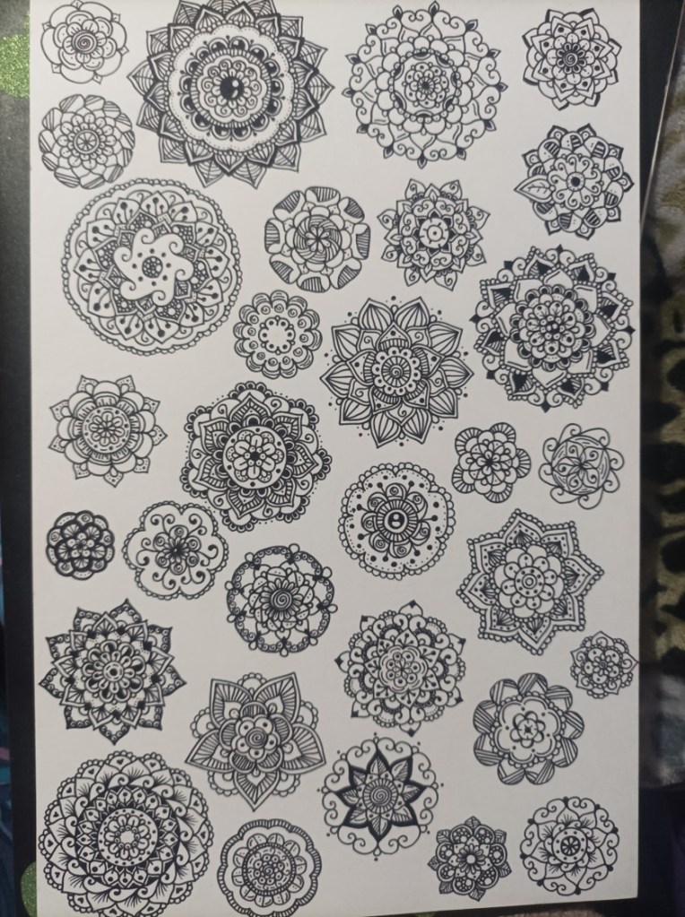 Igual e hecho otros dibujos respectivos con distintas técnicas en sí, las cuales son: puntillismo, creación de mandalas mediante el uso de tiralineas, técnica mixta de acuarela con lápices de colores, estás casi no las e ocupado por el momento.